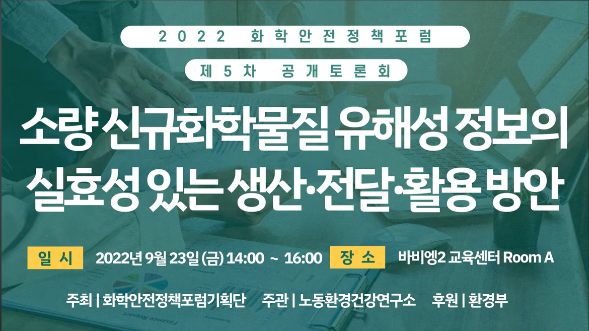 Áö³ 9¿ù23ÀÏ, ¿ÀÈÄ ¼¿ï Áß±¸¿¡ ¼ÒÀçÇÑ ¹Ùºñ¿¨2 ±³À°¼¾ÅÍ¿¡¼ '¼Ò·® ½Å±ÔÈÇй°Áú À¯Çؼº Á¤º¸ÀÇ ½ÇÈ¿¼º ÀÖ´Â »ý»ê¡¤Àü´Þ¡¤È°¿ë¹æ¾È ³íÀÇ'¸¦ ÁÖÁ¦·Î 'ÈÇоÈÀüÁ¤Ã¥Æ÷·³ Á¦5Â÷ °ø°³Åä·Ðȸ'¿¡ Âü¼®ÇÏ¿© 1Åæ ¹Ì¸¸ ÈÇй°Áú¿¡ ´ëÇÏ¿© ±¹³» À¯ÅëÇöȲ°ú ºÎÇÕÇÏ´Â ¾ÈÀü°ú È¿À²Àû ¿î¿µ¹æ¾ÈÀÇ Çʿ伺¿¡ ´ëÇØ ¹ßÇ¥ÇÏ¿´½À´Ï´Ù.